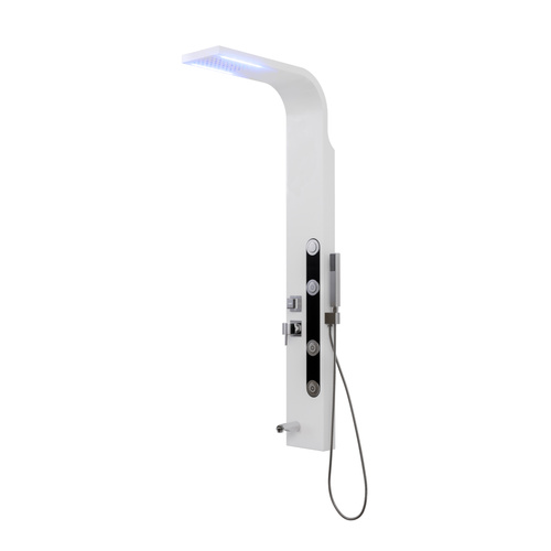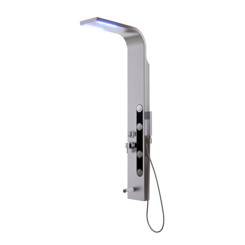 سایر توضیحاتجنس بدنه استیل 304 ضد زنگ مقاوم در برابر رطوبت و لک‌ اثر انگشت مقاوم در برابر خط و خش چراغ LED بدون نیاز به برق و باطری دوش سقفی و دوش دستی ماساژور ایستاده آب ریز پایین (وان پُر کن) و دوش‌ آبشاری
